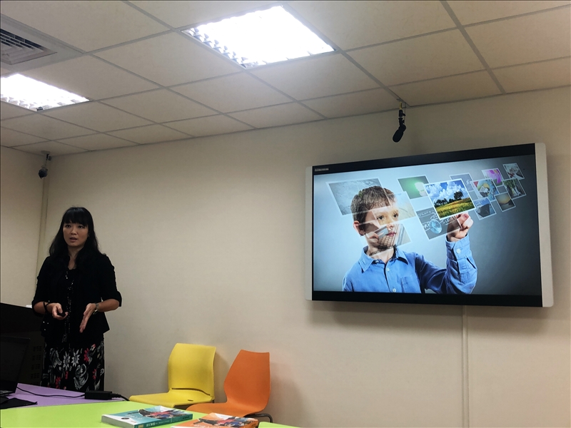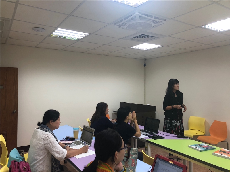 淡江大學華語中心邀請華語中心專任華語老師袁寧均來分享如何將軟體能力運用在課堂上。首先,袁老師分享了許多實用的小網站,例如倒數計時器、點人名、抽字卡等簡單易操作,讓華語老師們能快速上手。接下來,對於學生口語的操練,袁老師介紹了心製圖的製作,學生可看著老師事前做好的心製圖預習,下節課便可以大量的練習口說。