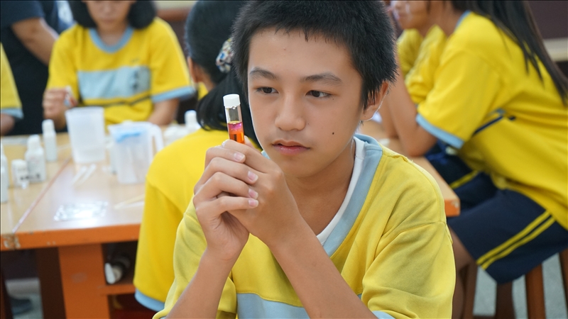 興中國中的同學專注觀察"碘"的顏色變化