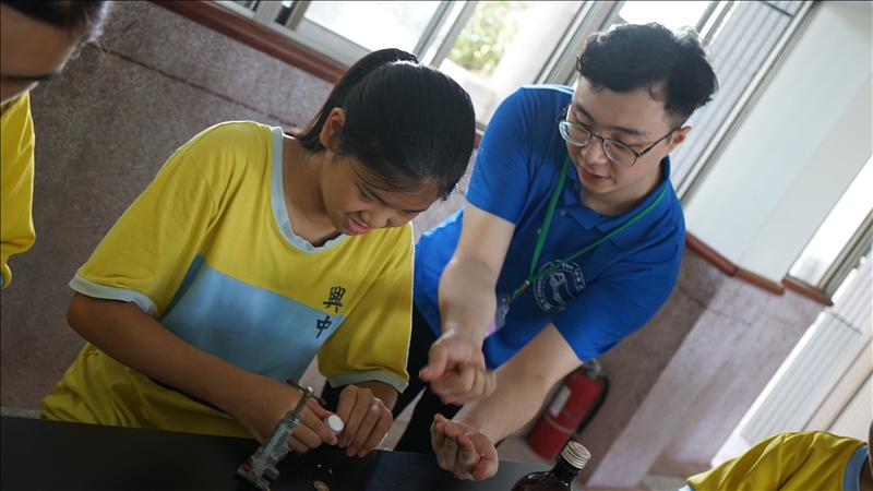 興中國中的同學在淡江大學輔導員的協助下進行實驗操作
