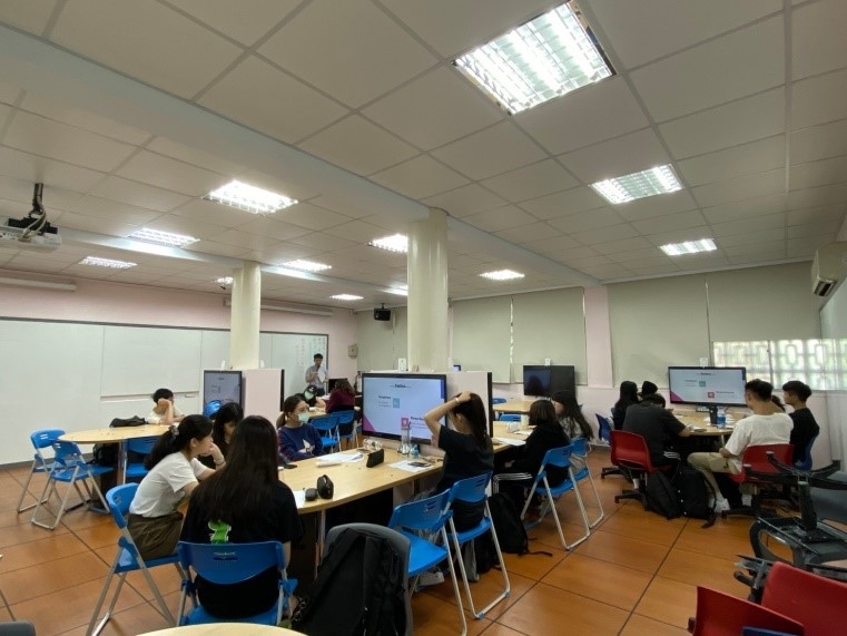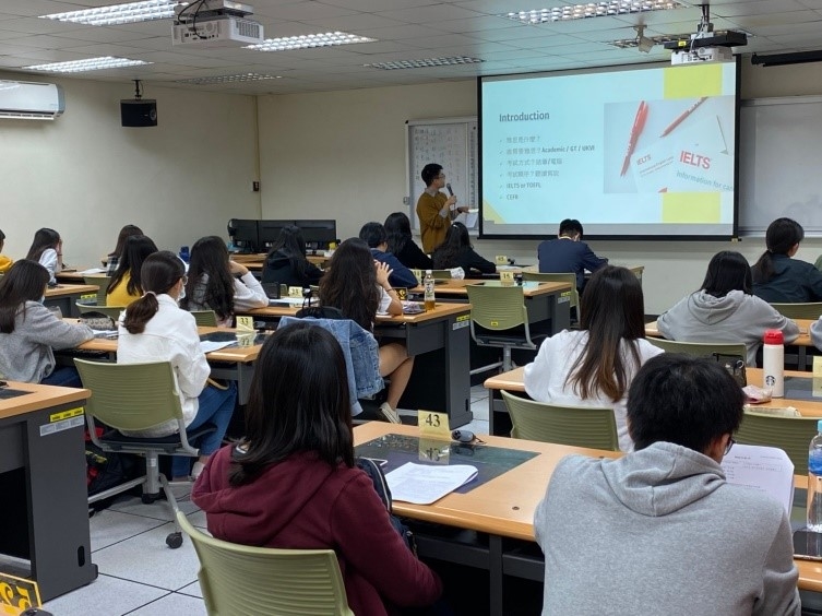 本工作坊分為兩個主題,主題一為雅思作戰技巧,內容循序漸進,分為三個場次進行。講師為英文系畢業系友張育聖,2017年自英文系畢業後,為了申請遠赴英國攻讀語言學碩士,而開始準備雅思考試。在他準備的過程中,他發現這不僅僅是讓自己的英文能力突發猛進而已,雅思獲得高分更能讓自己得到想要的任何工作offer,因此學成歸國的他,投身進入雅思訓練的領域。在本工作坊中,他從聽說讀寫各方面帶領同學們一起試做題目,再一一拆解各個題型的答題技巧。他表示,身為英文系畢業的人,若只是多益拿到高分是無法和眾多優秀畢業生競爭的,但雅思拿到高分卻能大大提升自己進入大企業大公司的機率,因為它是足以證明你的英文是具備學術水準的程度。參加的同學們在分享回饋心得時,也幾乎都表示在一起做題目時才體會到,雅思並不是好準備的考試,而是必須要有效率且穩紮穩打地不斷練習才可以,紛紛表示這次工作坊非常實用。