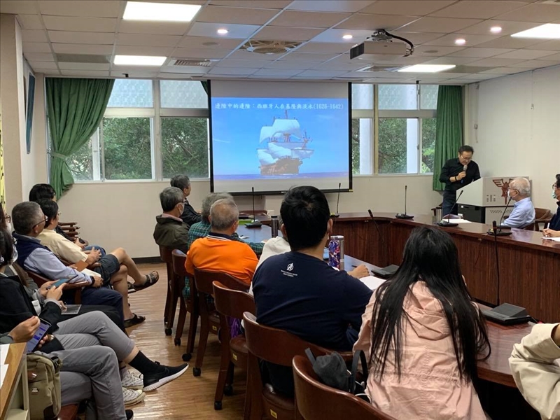 李教授的演講由一艘仿古的西班牙貿易船停在基隆港的照片開始,談到15世紀世界各國的航海版圖,各國在與中國的貿易路線中發現了台灣,由於台灣腹地較大且可以連結中國、日本及東南亞各據點,因而引發各國佔領台灣的念頭。其中1624年荷蘭人很快佔領了大員,造成西班牙人對中國航線上的阻撓,因此1628年西班牙人從馬尼拉北上佔下基隆和平島,與當地原住民交流的同時一邊等待補給船,一邊興建防禦稜堡。除了軍事防禦之外,從現有的文獻資料也可以看見當時西班牙人在遠東貿易時對亞洲的觀察。李教授展示一系列稱為「馬尼拉手稿」的檔案資料,是由西班牙繪師繪製的圖畫,裡面繪有當時基隆與淡水的原住民、中國閩南人、畬客(客家)人等,其中淡水的原住民手上抱著一顆沒有下顎的人頭骨,可想見當時淡水原住民的剽悍。而在基隆和平島的西班牙人與原住民交流的過程中,為了能交換到更多的食物及物資,決定接受淡水原住民其中部族的結盟,繞過北海岸來到淡水攻打其他部族,然而卻因此而遭到原住民毀約欺騙,西班牙因此為報復而佔領了淡水部族的地盤,也就是今天淡水紅毛城一帶。