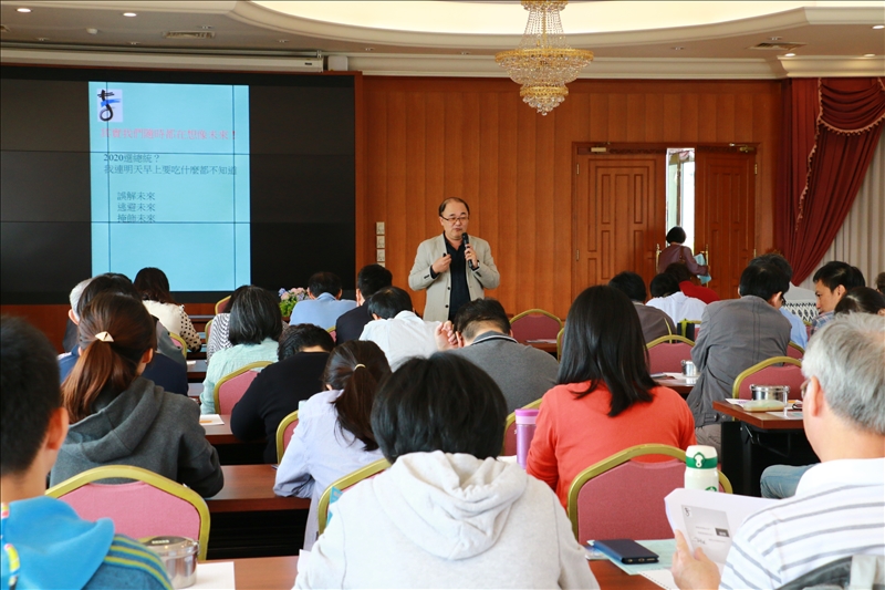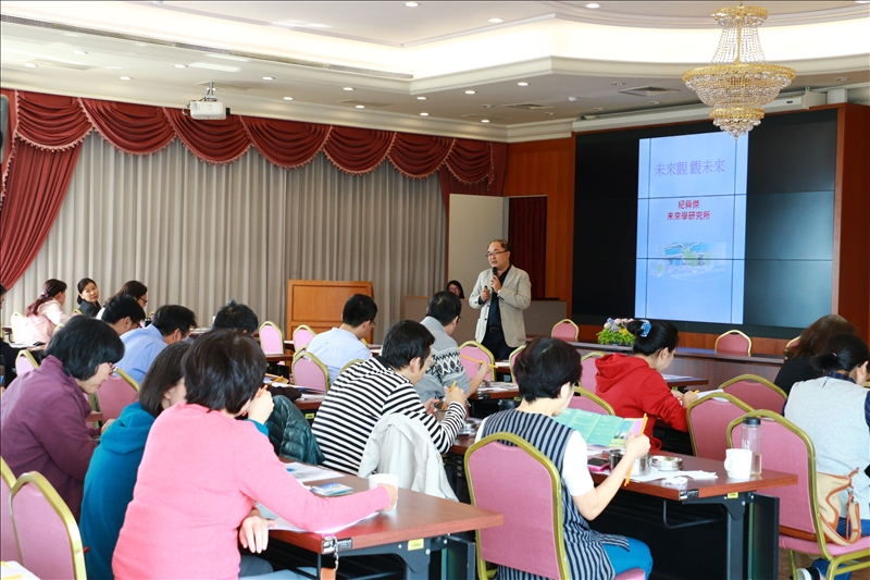 最後,紀老師分享自己對於淡江未來化的願景,希望大一新生能更早接觸未來學的相關課程,培養學生的前瞻思考,漸漸變成一個內化的思考模式。透過紀老師詳細的介紹未來學,讓與會老師更瞭解未來學的重要性。