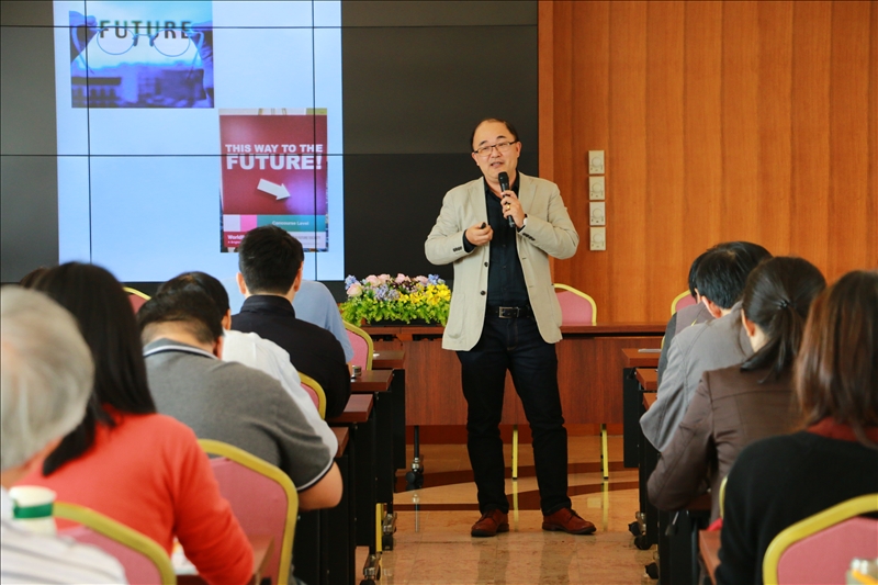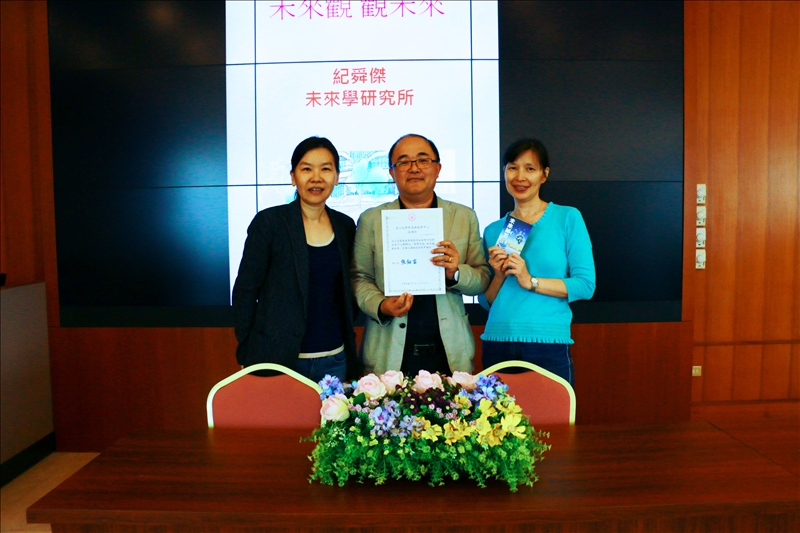 當時淡江大學創辦人張建邦博士將未來化從美國引進,開始淡江大學的未來化。John McHale在1969年曾說:「過去的未來是建立在未來,現在的未來是建立在過去,未來的未來是建立在現在。」紀老師仔細地介紹未來學的內涵,未來學是一門研究可能的(possible)、可見的(probable)、可欲的未來(preferable),以及潛在的多元世界觀與迷思的知識領域,並分享如何運用未來學,其中包括洞見、遠見、創見。