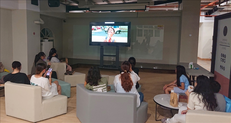 同學們專心觀賞電影