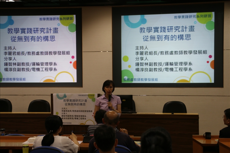 為協助本校教師進行教學實踐研究,教師教學發展組邀請本校運管系鍾智林老師與電機系楊淳良老師分享在教學研究計畫中如何在課程中找到適合的主題與方法,另一部份,也邀請了本校圖書館館長宋雪芳館長以及資訊處郭經華資訊長分享校內的資源及應用。