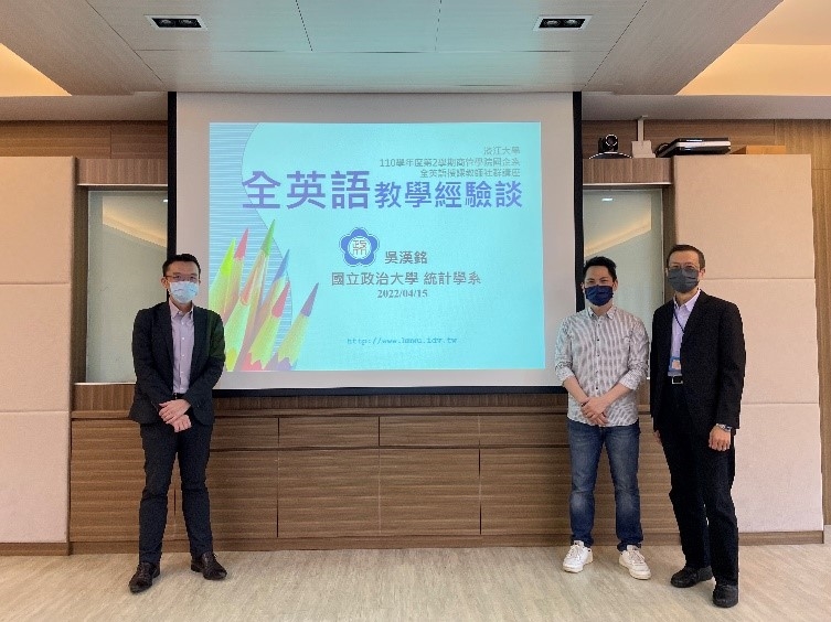 國際企業學系於2022/4/15 邀請國立政治大學吳漢銘教授蒞臨淡江大學進行全英語教學講座,吳漢銘教授經歷包括淡江大學數學系教師、國立台北大學統計系,在吳教授教學過程中參與淡江大學昆士蘭英語種子教師訓練,也於台北大學任教期間參與國立新加坡大學EMI種子教師訓練,吳教授分享中提到全英語教學第一要務需要英語教學內在動機與熱忱,吳教授鼓勵老師們多參加相關研習營與種子教師訓練活動,第二,吳教授也提供相關數位電子平台,可以跟學生建立網路互動平台,多多了解學生需求並增進與學生溝通橋樑,最後吳教授也同時建議學校能夠提供給教師更多獎勵制度,讓老師們能夠獲得更多支援與補助,如此在全英語教學推動上會更加順利。