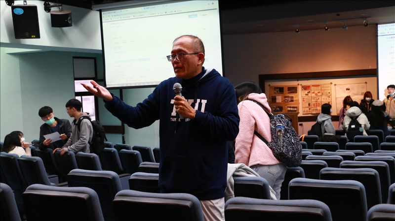 觀課老師提問到關於課程助教以及如何公平地評分這麼多學生,陳老師則回應共同科目沒有配發助教,專業服務學習才有,而評分的部分很大的比佔為期末考試,除了考上課時的知識之外,也會讓學生自評與互評同組成員,以此來了解每位同學的學習狀況與其在小組中的參與程度。