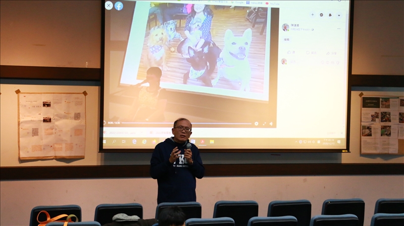 陳建甫老師提到服務課程上學期為弱勢團體與社會福利,下學期則為志工精神與社會服務,兩門課程都是170人的大班課程,面對這麼多學生除了要設計好的課程外,引起學生上課的動機更是重要,本學期的課程以關心視障者為主,利用角色扮演的方式讓學生能夠產生同理心,此外也會邀請相關人士來演講,讓學生們能夠了解並在乎弱勢團體的處境,陳老師自9年前便與盲生資源中心進行交流,才會延伸出課程中「角色扮演導盲犬」的想法,也有和學生介紹盲生的輔具例如點字機、導盲杖等…。