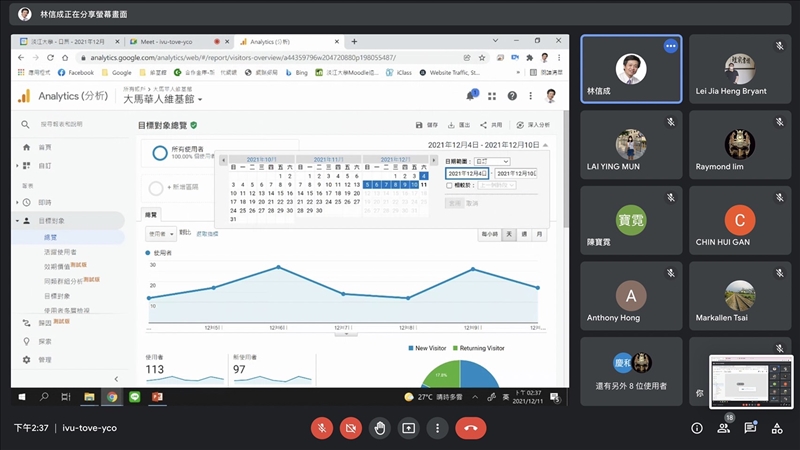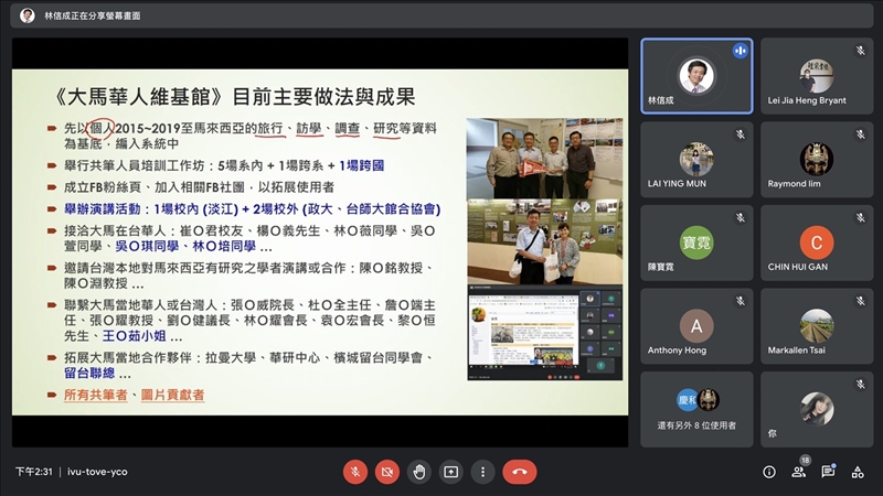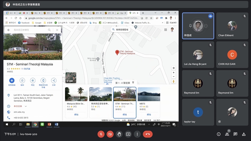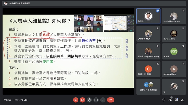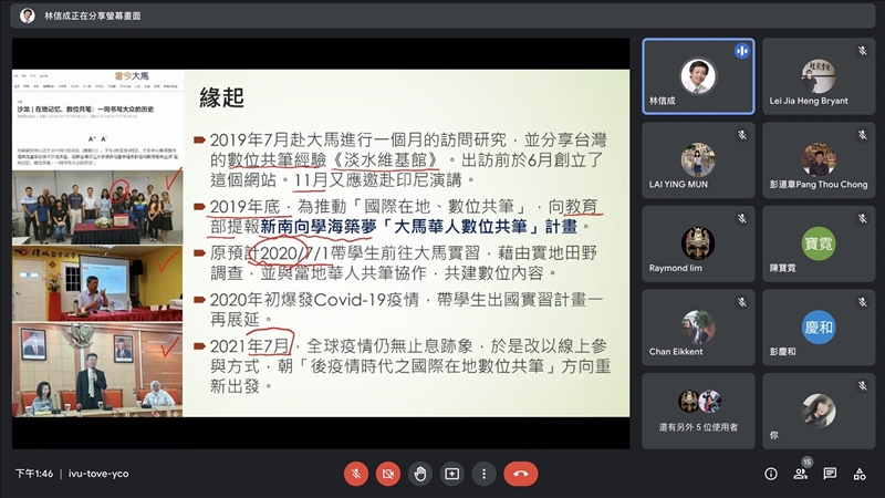 他結合過去建置維基館的具體實踐經驗,尤其是「淡水維基館」的實地田野調查成果,將主題維基館的概念延伸到馬來西亞這個場域。但由於疫情的關係,無法帶學生到馬來西亞實習,惟有透過線上Google Map踏查,並在有限的資源中,建立「大馬華人維基館」的資料。