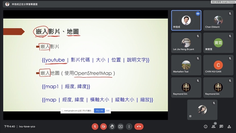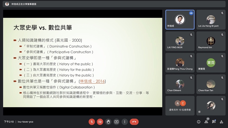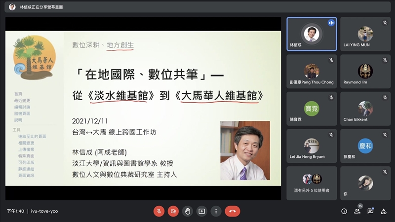 林信成教授除了為大家講解數位共筆的語法,也帶著參與者一起進行實務的操作。他也呼籲對馬來西亞歷史與文化有興趣的大眾一起學習和共筆,共同參與知識的建構工程。