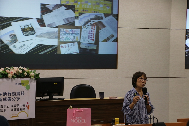 教發中心於109年 10月14日邀請語言系謝顥音老師,進行「全球在地行動實踐創新果分享」講座,謝老師以自己於「畢業專題」課程,國際化經驗與在地實踐的結合,向與會教師說明其創新教學的規劃與成果。