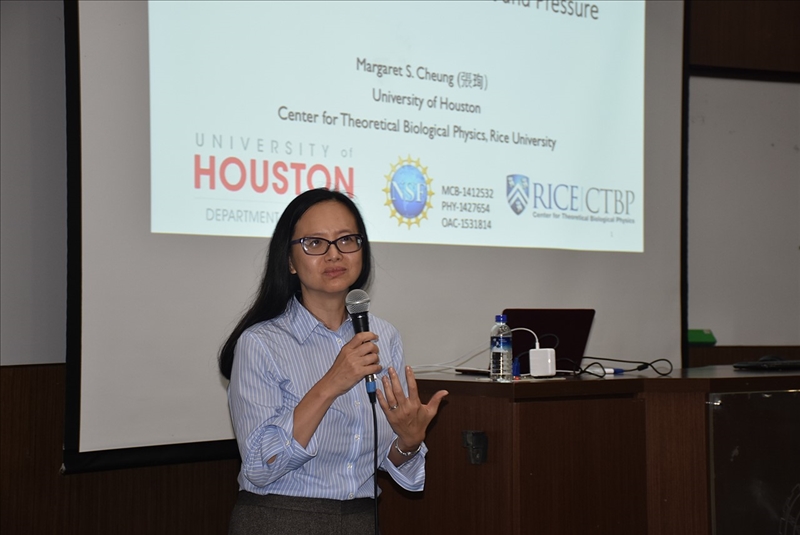 本次的演講者將帶領我們領會細胞內『擁擠』的環境是如何透過複雜的交互作用,調控生理所需的『酶』催化功能。講者的研究團隊利用最先進的計算技術,從『物理』的觀點來證明,透過溫度-壓力以及擁擠程度可調節蛋白質形成新的『結構』,這是屬於物理學上的『臨界現象』。此研究也經過世界級生物物理實驗學家Gruebele的螢光實驗團隊的驗證。研究結果表明,在生理條件下接近臨界點,對於酶的功能將是有利的,因為蛋白質可以在不需經過難以跨過的熱力學屏障情況下,廣泛地轉變成不同的構象,以達成『酶』的催化功能。