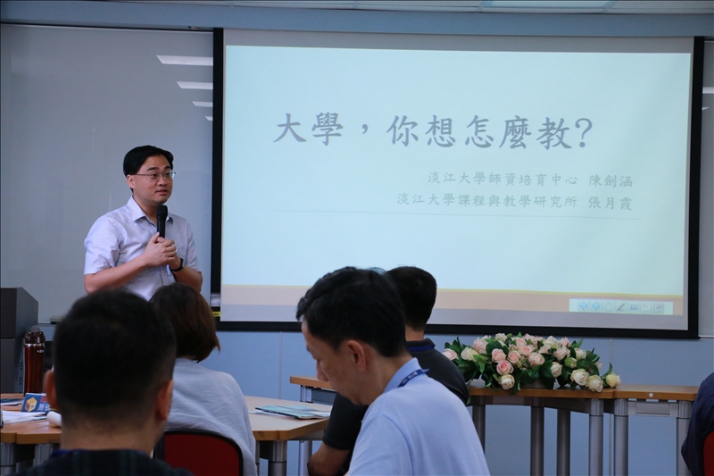 學習與教學中心教師教學發展組於9月4日舉行「107學年度新聘教師教學工作坊」活動,透過工作坊讓新聘老師能更快適應淡江大學的教學生活。本次工作坊的課程邀請師培中心陳劍涵主任及課程所張月霞老師。上午的課程將分為兩個部分,首先由張老師分享理論課的教學設計,接著由陳老師分享實務課的教學經驗。