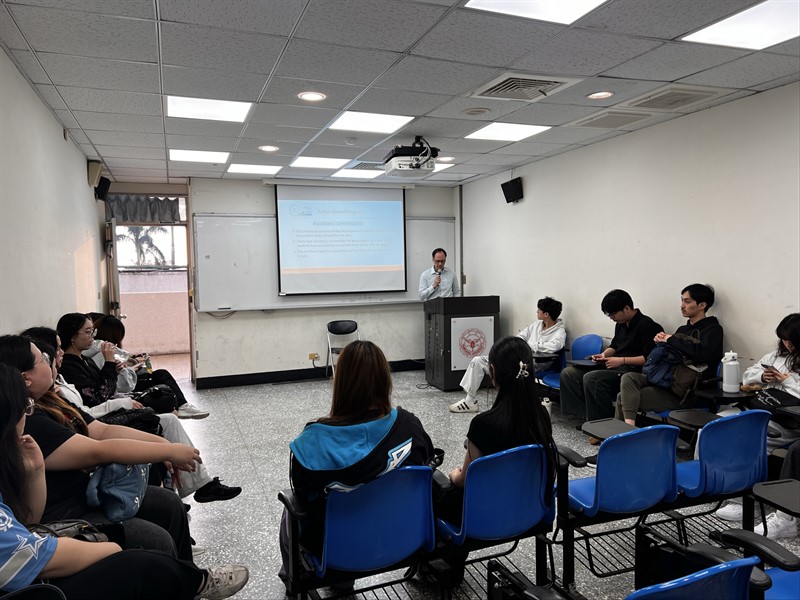 此外,適逢系上初步完成大三出國姊妹校的篩選作業,這場活動也成為了重要的資訊傳遞平台。透過系主任親自向同學們詳盡說明各校特色及申請現況,不僅讓申請流程更加透明,更重要的是為正在準備語言檢定與申請文件的同學指引了清晰的方向。