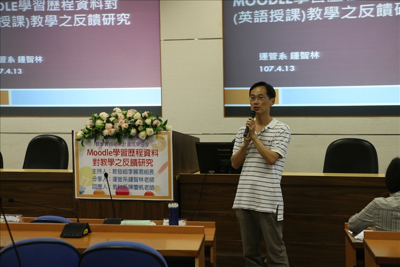 為鼓勵本校專任教師投入教學,本組於107年4月13日舉辦「教學實務研究與成果」座談,邀請106年度獲得教學實務研究計畫補助之教師運管系鍾智林老師對其教學經驗進行研究成果發表與座談。