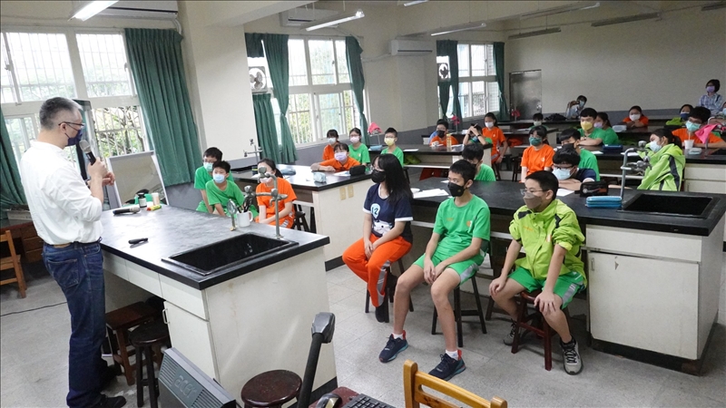 在新北市全面改為遠距上課前,分析車出任務來到位於土城區的中正國中,陪科遊社七八年級的同學用滴定法分析飲料和健康食品裡的維生素C含量,中正國中的科遊社是我們很熟悉的一個社團,學生的實力一直都非常強,邏輯很清楚,即使是七年級還沒學過化學的同學都能在上課後的問答中清楚的講出這個分析滴定實驗的原理,也懂得實驗過程中反應現象所代表的意義,看他們寫得滿滿的筆記,小編表示欣慰。