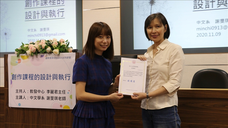教發中心於109年 11月9日邀請中文系謝旻琪老師,進行「創作課程的設計與執行」的經驗分享,謝老師利用自身國文專業的知識結合上興趣-插畫,發想出創作課程的內容。