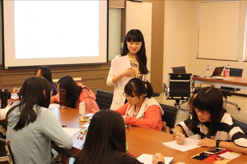 學習營內容包含基礎德語會話、歌曲、遊戲,也有介紹德國飲食用語及國際禮儀。德文系賈助教從最基礎的ABC字母開始教起,用最淺顯易懂的方式帶領學生們進入較進階的德文課程,並適時補充德國文化的各種題材,而在課程當中賈助教還帶領同學用德文數字玩遊戲,課程內容生動豐富,學生們也都收穫滿滿。