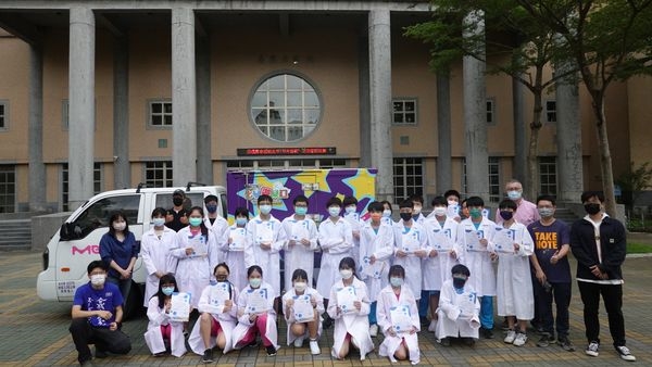 統計的結果,安溪國中的水質硬度屬於中度軟水,實驗結束後我們在演藝廳前合照,剛好同學們向著短暫露出的陽光,背後是個又大又宏偉的建築,這照相地點也太棒了吧!