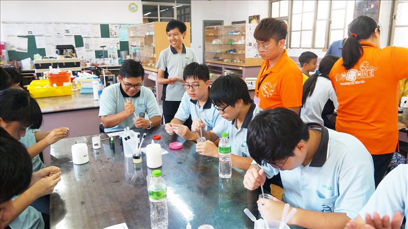 本年度花蓮縣最後一間巡迴的學校,我們來到自強國中,參加的都是九年級的同學。一般來說我們在上學期的活動很少遇到正被國中教育會考準備期間課業壓力呀得喘不過氣來的九年級,可見學校相當重視同學們要親手做實驗的學習,大家要好好謝謝學校對你們的用心喔!
