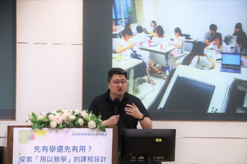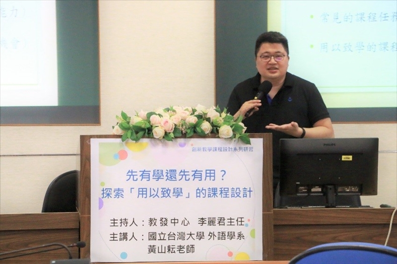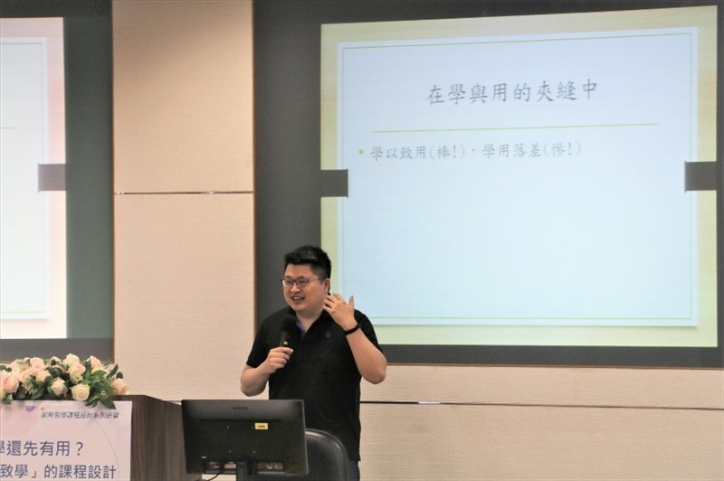 國立台灣大學黃山耘老師分享「先有學還先有用?探索『用以致學』的課程設計」之教學經驗。