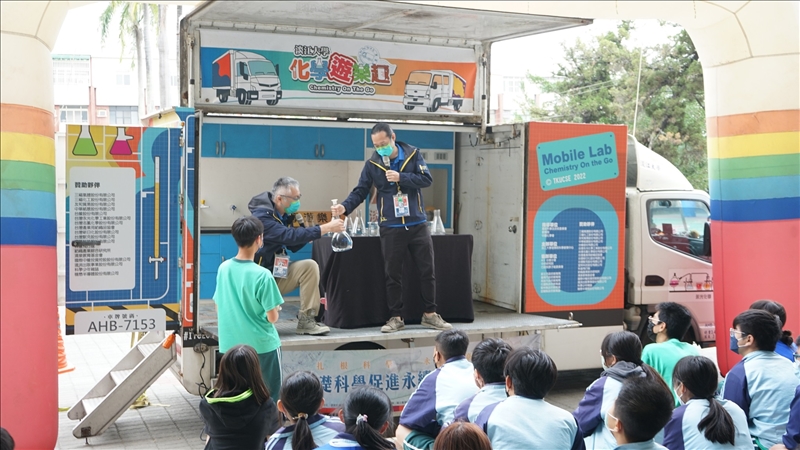 今天化學車駛入一所百年老學校,創立於1910年,就是已經超過一百歲啦! 這個位於臺南市西北邊的區域,最有名的是作物是文旦,每到中秋節時,麻豆文旦可是最最最知名的人氣水果,我們今天與麻豆國中四個班級的八年級同學一起玩樂文旦(X)化學(O)。