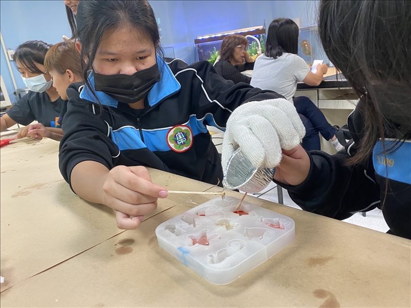 凍凝香氛台使用的是加熱後具有流動性的聚合物,橡膠熔岩則是用加熱後具有流動性和黏性的聚合物,使用的都是台橡先進材料產品,台橡研發工程師們設計出的這些配方,讓那個橡膠熔岩真的好粘啊!我們一直不斷的提醒同學,千萬千萬不可以拿來亂黏(任何生物),這個橡膠熔岩除非使用正確的有機溶劑,一旦黏上去是超級難清掉的喔!不過拿來當作萬能黏土黏一些生活小物,倒是好用得很噢!如果你們有那個探索精神的話,我們倒是很好奇這個橡膠熔岩的負重能力,這是可以設計一整個系列的探索實驗噢!如果有同學感興趣,可以找老師跟我們聯繫,我們很愛幫同學做研究的!