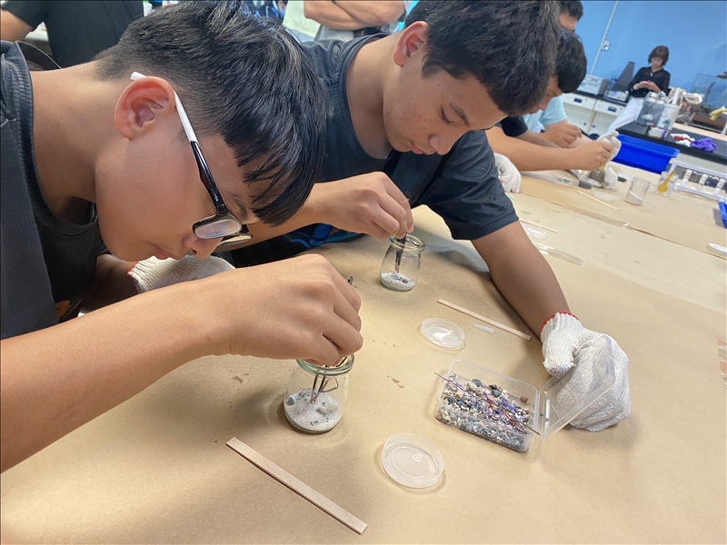 今天是化學遊樂趣長期以來的夥伴「台橡」,五十週年系列活動的最後一個節目。由台橡和化學遊樂趣合作,從高雄山林間邀請了桃源國中、寶來國中、甲仙國中、溪埔國中和杉林國中的同學們來到科工館(這幾所學校剛好一條山路一路走進市區,前後距離一百多公里),參加「橡往山林」公益科學營,同學們一早就從不同的山林間搭上交通車來到科工館,參觀特展,看電影還有動手操作由化學遊樂趣和台橡一起設計的新實驗"凍凝香氛台"和"橡膠熔岩"兩個全新的實驗!
