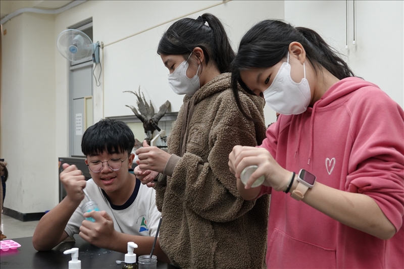 我們昨天抵達的時候,一開始以為旁邊的那一大群建築物就是校區了,結果開到門口才知道,那是海佃國小,今天同學跟我們說,海佃國小是一間非常非常大的小學,學生超多,而且很活潑,說實在的,我們也覺得海佃國中同學的活潑程度不惶多讓,從上午助手訓練開始同學氣氛就很嗨,表演的時候雖然拼命互相推擠著才會上台,可是當台上台下需要互動的時候,又非常熱烈的回應,到了實驗室動手做,那個安靜的秩序只能維持個幾分鐘,然後就討論個不停,其實我們有些訝異,在這種氣氛下同學怎麼聽得到我們講師在教些什麼,可是從活動後的回饋和有獎徵答,很明顯地大家都學起來了,這學習能力滿強大的啊 !