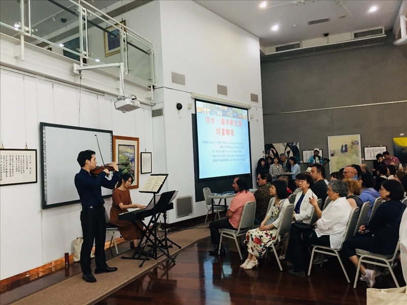 首先,當日上午在文錙藝術中心舉辦了「淡水、海洋與生態」詩畫聯展開幕式的活動,邀請了小提琴及鋼琴家演奏多款經典曲目為活動拉開了序幕,由淡江大學國際事務副校長王高成代表致詞,英文系、西語系、法文系學生擔任翻譯,一一介紹與會詩人,開幕式後並準備了精美茶點、雞尾酒給與會貴賓享用。該詩畫展邀請了三十多位藝術家,以畫作描繪他們眼中美好的淡水風物,並邀請諸位詩人「以詩佐畫」,讓觀展者有著全新感受。中午邀請各位詩人貴賓們於驚聲國際會議廳進行藝術交流活動並享用中餐。