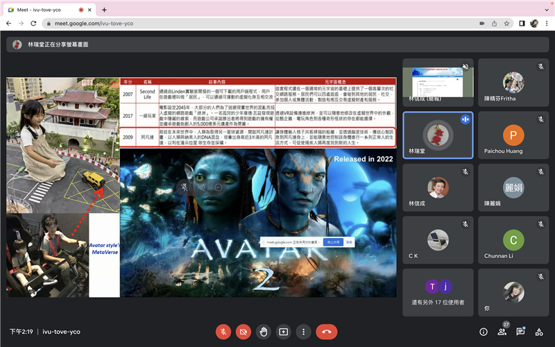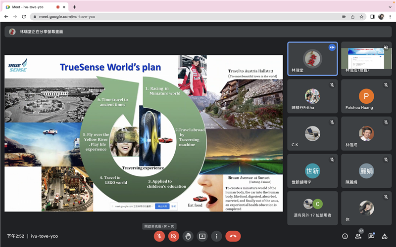 此次講座邀學「初上石公司」林瑞堂董事長主講,他以阿凡達電影的故事情節為概念發想,將元宇宙視為現實世界的延伸,讓現實世界的軀體可以透過分身的操作,在另一個世界行走。因此,他在2019年打造出「初上石公司」,希望在元宇宙中建構一個迪士尼樂園。他結合「微縮穿越體驗系統」和「XR360穿越機」打造該遊戲世界,希望透過無人載具,讓體驗者穿越進微縮的世界裡遊走。他指出,車子比例皆按真實打造,具防撞功能,賽車道更是該公司的專利項目,此外也用心打造虛擬世界中的雨、太陽、魚等物,希望能藉此提升體驗者的五官感受,有如身臨其境。他也分享多支影片,介紹該公司過去的成果,以及微縮穿越體驗系統的最新趨勢。林董事長目前正和樂高公司進行接洽,未來他也希望能和各大專院校合作,以台灣的歷史為主題,將各個場景建置成一個空間,透過微縮穿越系統,讓人穿越在消失的歷史地景中,感受台灣這片土地的人文氣息。