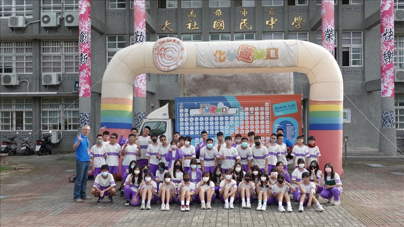 今天來到高雄市大社國中,同樣有邀請長久支持化學遊樂趣的「台橡公司」一同帶給大社國中精彩的開場表演與化學實驗,他們除了有負責ESG的長官來到現場外,也派出了七位的志工來協助大家呦~與其他學校不同的是我們帶來連續兩場的開場表演與四種不同的實驗關卡,因為希望讓盡可能多的同學都能參與到我們的課程,啟發大家對化學的好奇心與探索慾。