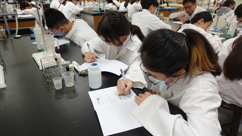 到了實驗室之後,同學們不只努力抄寫著實驗重點,同時也