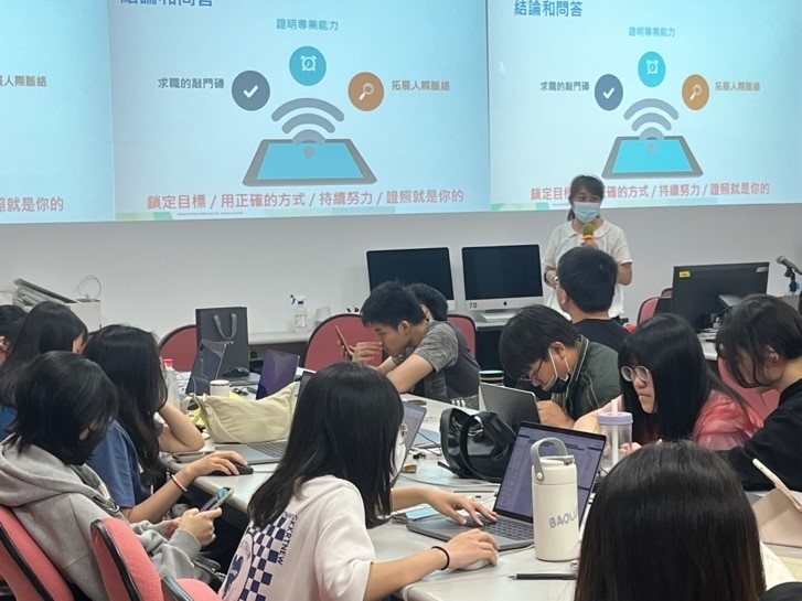 本次活動共計39人參加,透過陳處長親身的職涯經驗分享,她理解學生現階段也許還未找到方向,但透過培養感興趣的技能並考取證照,是一個累積學習與專業的管道,她透過許多實例將考取證照的幫助,結合自己跨領域的職涯案例,使同學能夠理解各項人才培育的需求與面向,協助同學認識跨領域人才趨勢與考取國際證照的優勢與幫助。