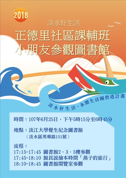 本校大學社會責任計畫B類淡水好生活,本計畫實踐場域之一為正德里,透過帶領正德里課後照顧班的小朋友發現社區內燕子步道,從尋找、觀察中建構人造環境中的生物多樣性,探索人、環境、生物的知識,日後並將此成果累積後向社區居民發表,達到從小朋友之眼引領社區一起討論社區環境的目的。