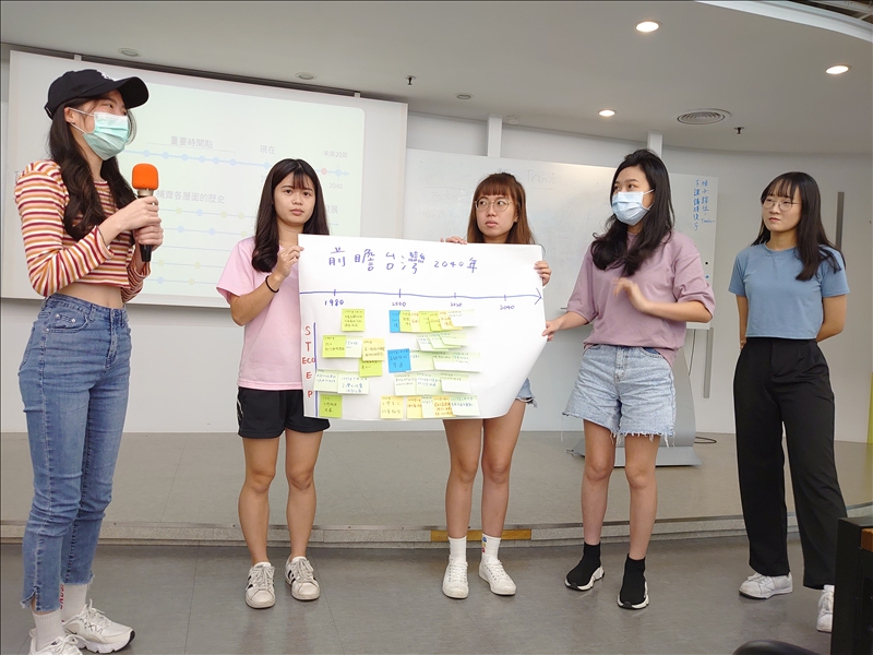 本次工作坊,主要教導讓學生對未來情境有了更深入的理解,並且學習到了如何利用人工智慧(AI)技術來創造出2050年的未來圖像。不僅提供了關於未來社會、科技、環境和經濟趨勢的理論知識,還結合了實際的AI工具操作,讓我們能夠將抽象的想法轉化為具體的視覺呈現。