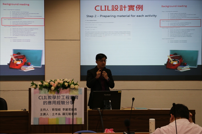為使授課教師了解Content and Language Integrated Learning (簡稱CLIL),並有效將CLIL教學技巧應用到課程中,學習與教學中心邀請赴澳洲混士蘭大學參加英語授課培訓的土木系羅元隆老師經驗分享,讓教師了解如何學習CLIL及改造自己的課程,並分享應用在課程中的實際案例。希望藉由教學經驗傳承,吸引更多教師應用CLIL教學。