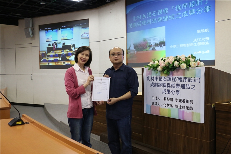頂石課程的實施可使學生統整與深化大學所學,讓學習更穩固,是大學學習總體檢。因此,學習與教學中心邀請化材系陳逸航老師,分享頂石課程規劃經驗與成果,讓教師對頂石課程有更完整的認識與了解。